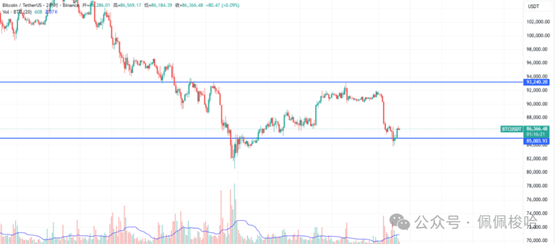 (3) The pressure level for BTC is at 93200; the BTC rebound has not ended, and it is still looking for a rebound above 100,000, of course, provided it breaks through 93200 with volume.