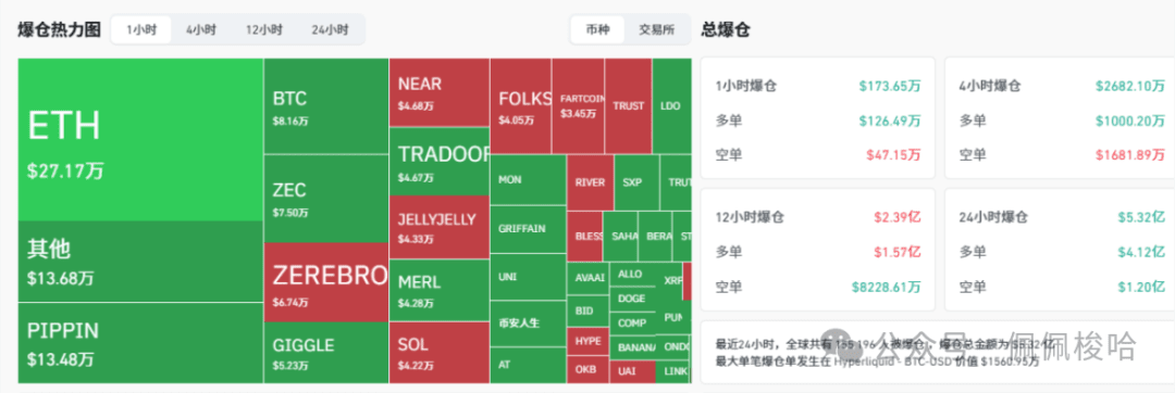 In the last 24 hours, a total of 155,674 people globally have been liquidated, with a total liquidation amount of $532 million! On a macro level, negative factors continue to emerge: interest rate hikes in Japan, MSTR's explosion, and FUD around Tether. Currently, BTC and ETH are weakly adjusting in a downward trajectory. Whether they can strengthen later needs continued observation. During this phase, maintaining learning or taking a passive approach is the best choice; not trading is equivalent to making money.