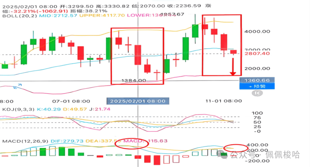 (2) ETH's monthly line did not close above 3050 (the middle track of the monthly Bollinger Bands), making it unable to move above 4400 (the upper track), so the probability of moving towards the lower track is very high.