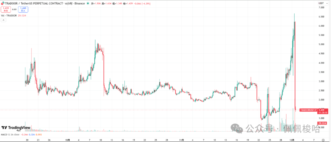 TRADOOR's price plummeted from over 6 dollars to 1.4 dollars in a short time, with a 24-hour decline exceeding 70%. Playing with single-machine coins is very unpleasant, clearly targeting the Chinese market. Taking advantage of the Asian market's rest, it started to push up and then quickly dumped! I believe most people can't react in time.