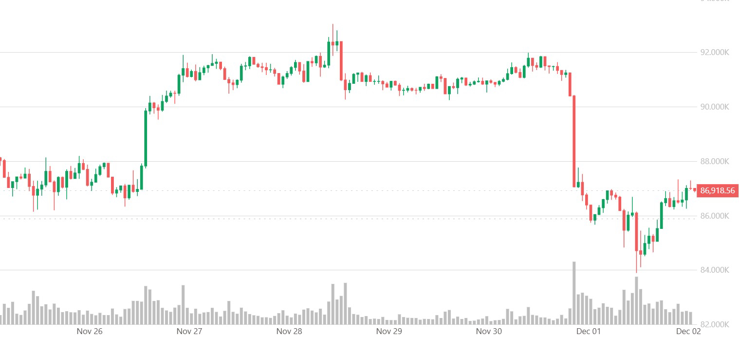 Entering the Asian market on Tuesday (December 2), the crypto market remains shrouded in pessimism, with Bitcoin hovering around $87,000. It briefly fell below the $84,000 mark yesterday, and the latest round of selling seems primarily due to signals from the Bank of Japan regarding interest rate hikes suppressing risk assets, while weak ETF fund inflows and limited dip buying indicate that structural demand remains sluggish.