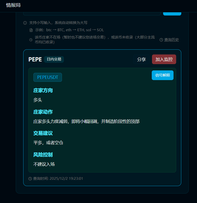 Intelligence Bureau Content Analysis: The Intelligence Bureau signal has already lit up — the strength of the longs is weakening, wanting to 'create a temporary top': akin to a brother shouting 'I can still drink', but in reality, his hand can no longer hold the wine glass. Now chasing the high to enter the market is just picking up the chips thrown out by big players.