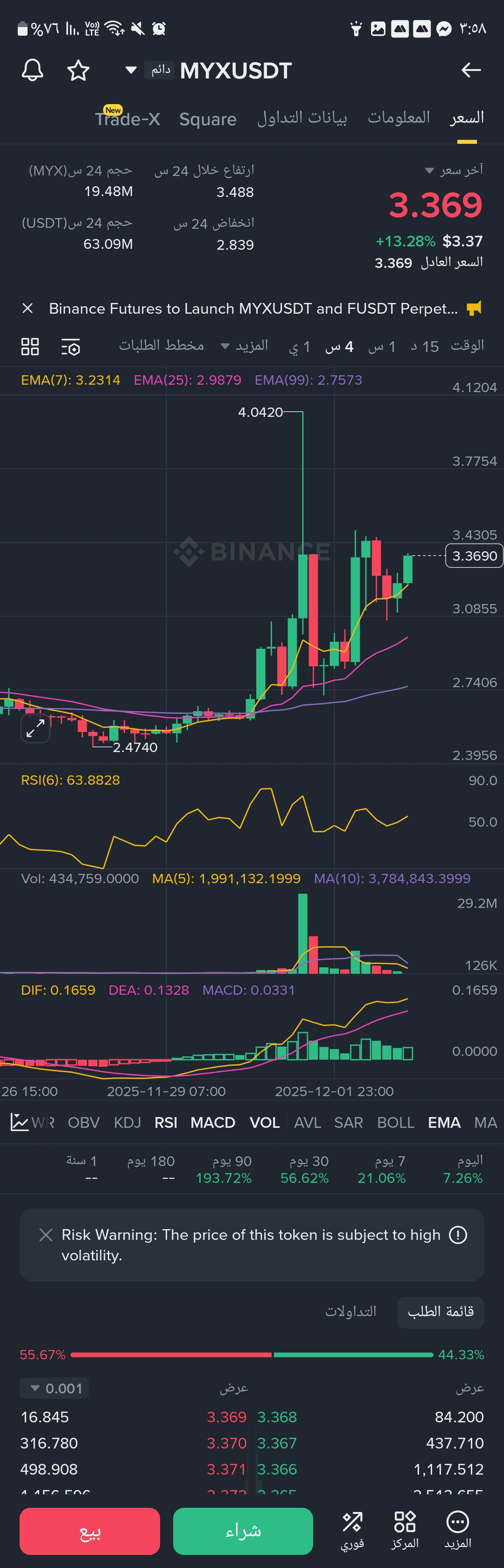 Price is above EMA7 – EMA25 – EMA99 ⇒ this means the trend is upward.