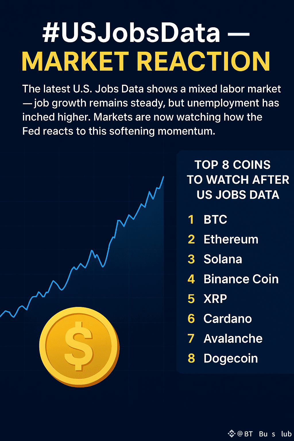 🔵 #USJobsData — Market Reaction Post (8 Coins Edition)
