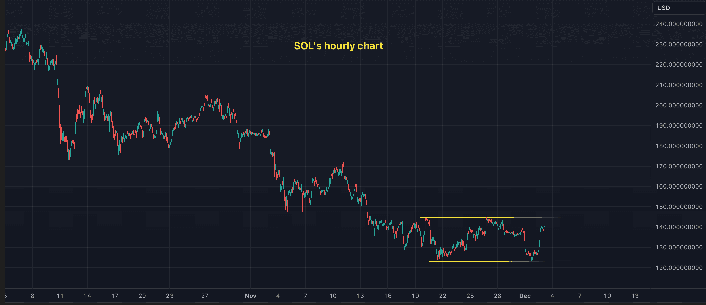 approaches the upper boundary of a clearly defined sideways channel around the $145 mark. A decisive breakout above this level will open potential for growth to $165.
