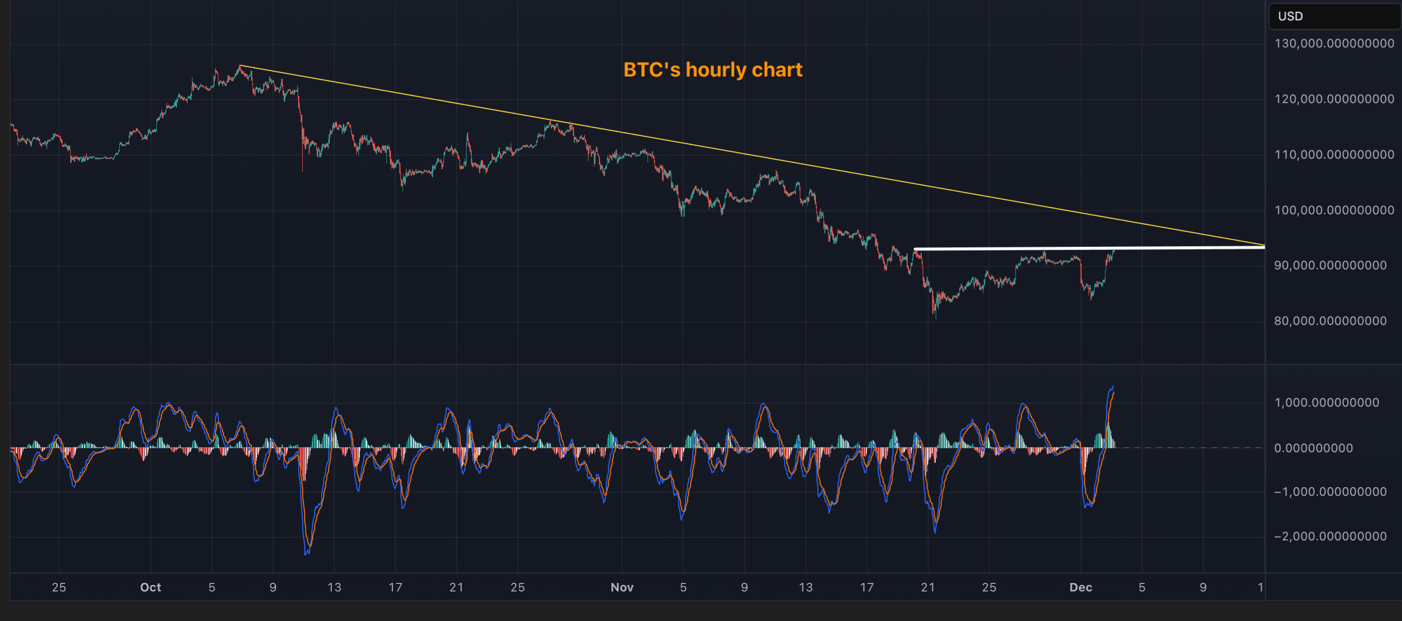 sharply rebounded from the support zone of $80,000–$83,000, testing resistance around Friday's high of $93,100.