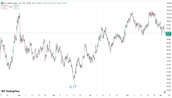 We all know that the recent round of pullback started on 10.8, while DXY gave a signal on 9.17, when BTC was priced at 11.5W.