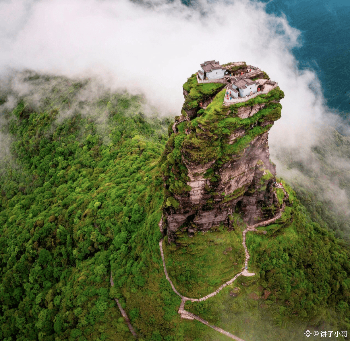 登8000台阶“佛国天梯”后,便能抵达这座屹立于云端的“天空之城”。