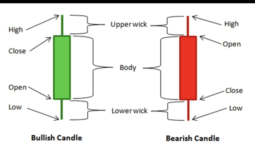Each candle represents a struggle between buyers and sellers over a period of time (1m, 5m, 1h, 4h, daily…)