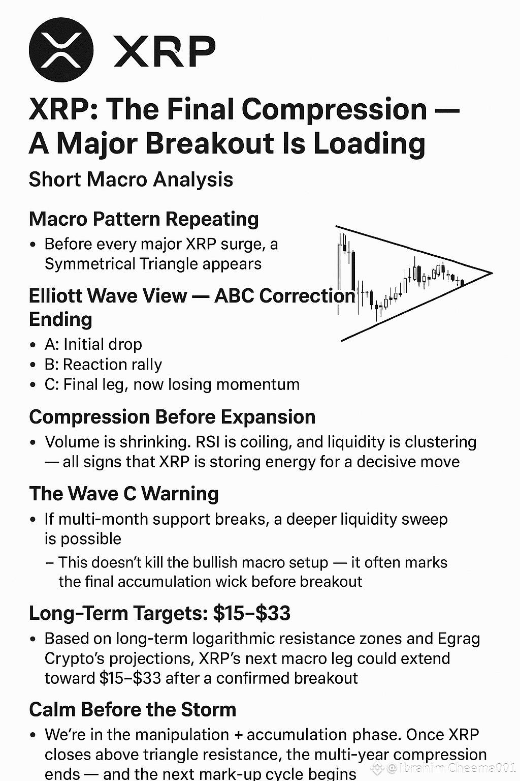 $XRP is approaching the end of a multi-year Symmetrical Triangle — one of the strongest technical structures in its history. This is not a small-time setup; it’s a long-term compression phase similar to the pattern that formed befor XRP explosive 2017 rally.