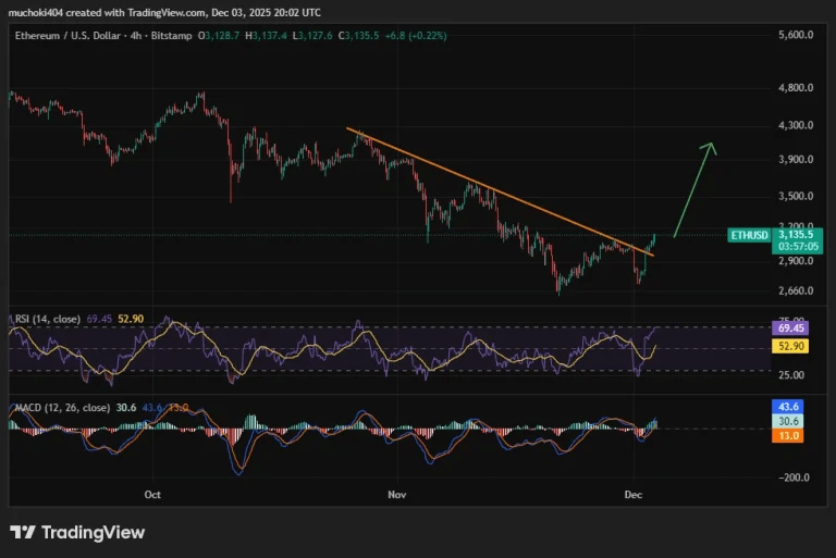 Ethereum (ETH) price has signaled a potential market reversal ahead. The large-cap altcoin, with a fully diluted valuation of about $377 billion, rallied 4% during the past 24 hours to trade above a crucial midterm supply level around $3,082.
