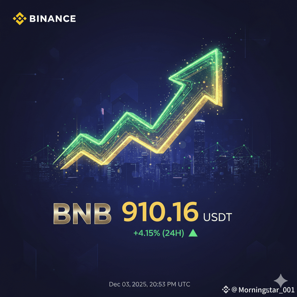 According to the latest Binance Market Data, as of Dec 03, 2025, 20:53 PM (UTC), BNB has successfully surpassed the 910 USDT mark.