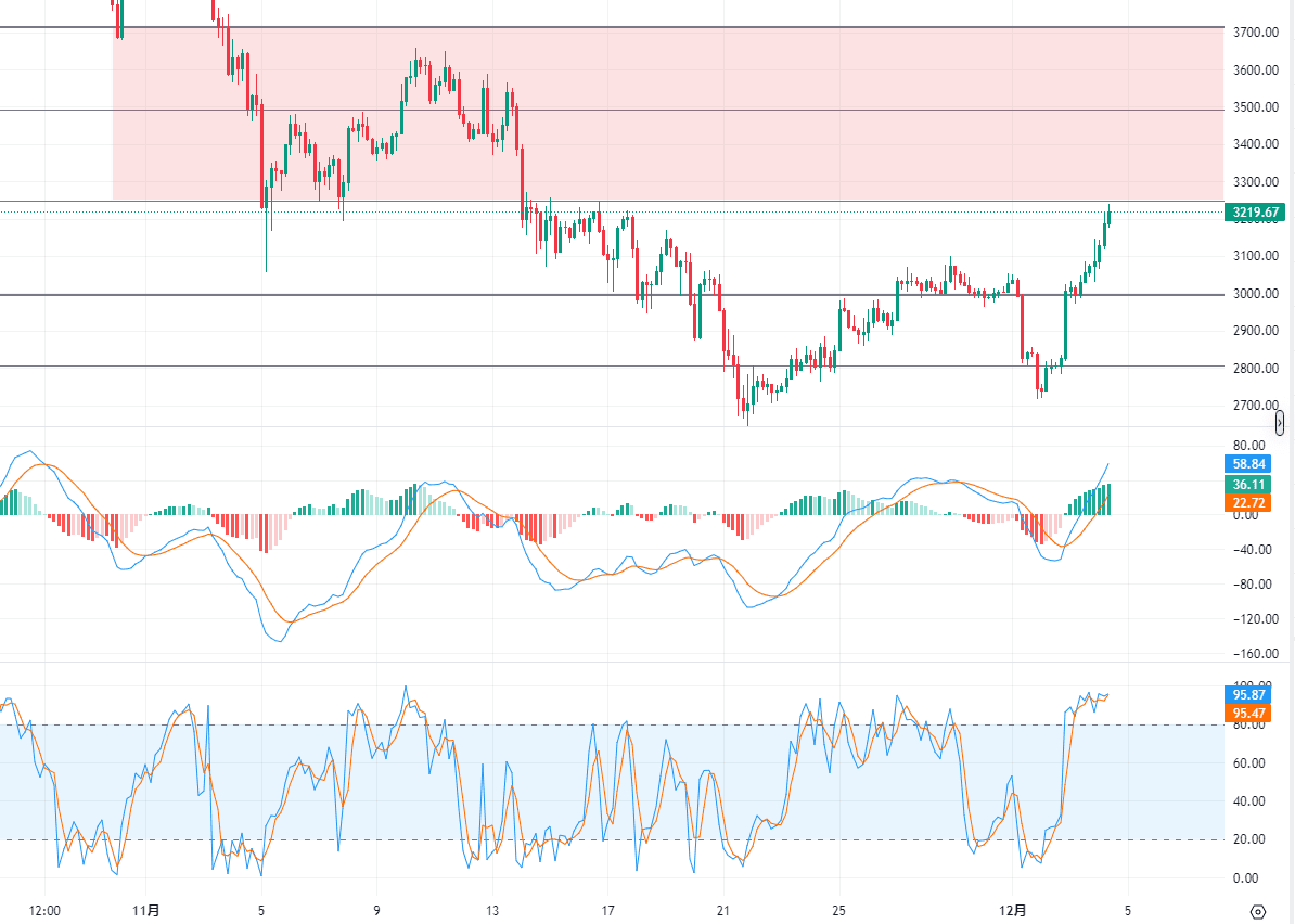 Ethereum is synchronously showing rebound characteristics, with previous support levels of 2950 USD and 2870 USD having been raised to 3080 USD and 3000 USD, forming a ladder-like defense system; key resistance during the day is located in the 3250-3300 USD area, and breaking through this will directly face the core resistance area of 3500-3700 USD from early last month’s rebound — this area is the 'bull-bear watershed' of this rebound; if it cannot be effectively broken, profit-taking by institutions may trigger a short-seller counterattack, and the price may experience a deep correction again.