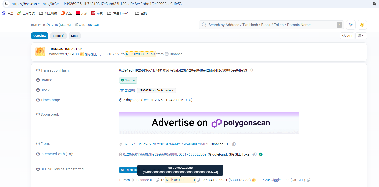 On December 1st, the first batch of Giggle spot and leveraged trading pairs fees (from November 1 to November 30) 6838 Giggle have been donated and destroyed respectively (Donation Transaction ID: 0x6e94a8fb672147d453436db4a792836ba2cd6cbb1f712d6dd5e59af7fc9d4dfa, Destruction Transaction ID: 0x3e1ed4f9269f36c1b748105d7e5abd23b129ed948e42bbd4f2c50995ee9dfe53), thereafter, donations and destructions of the previous month's will be done on the 1st of each month.