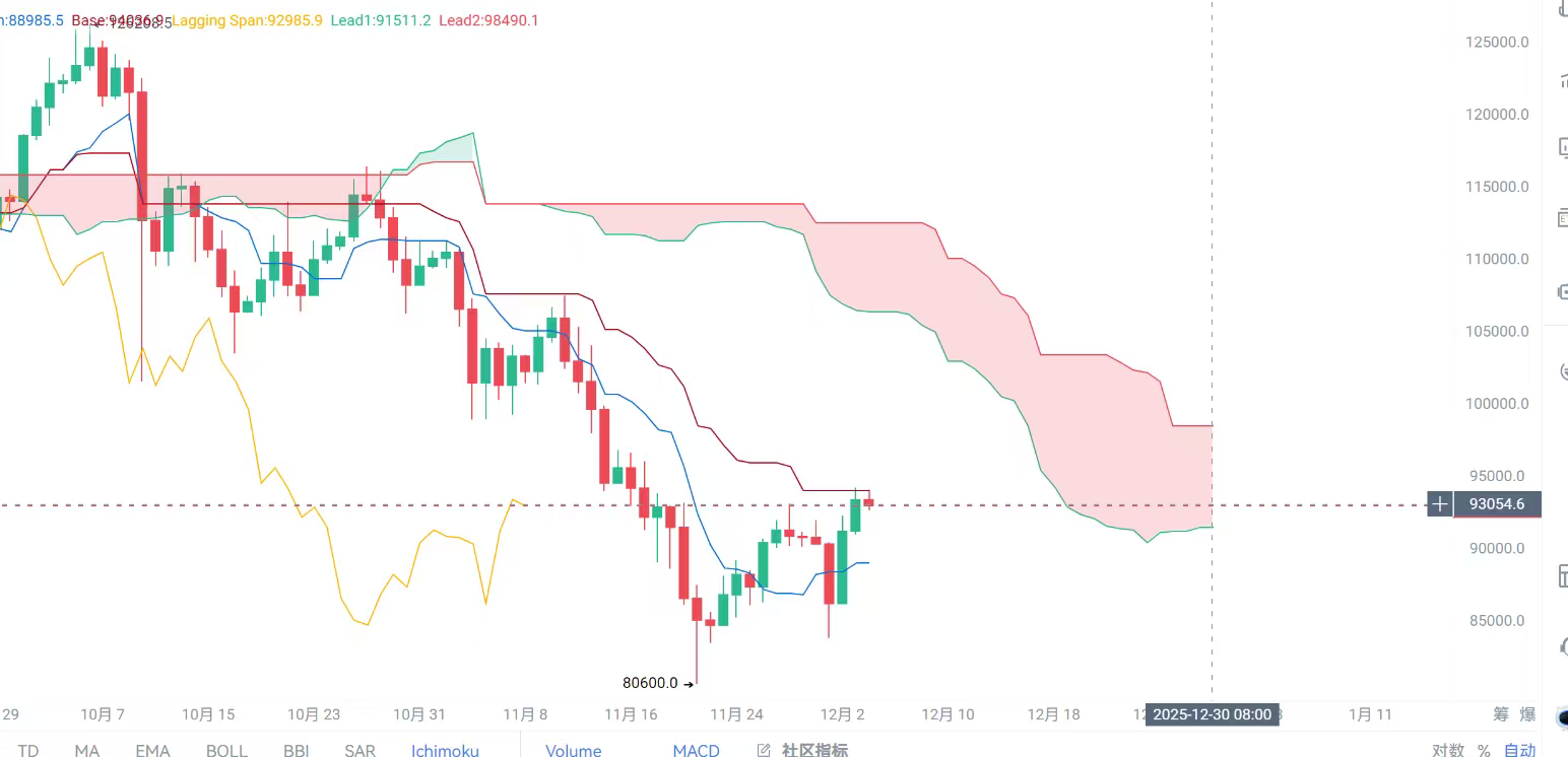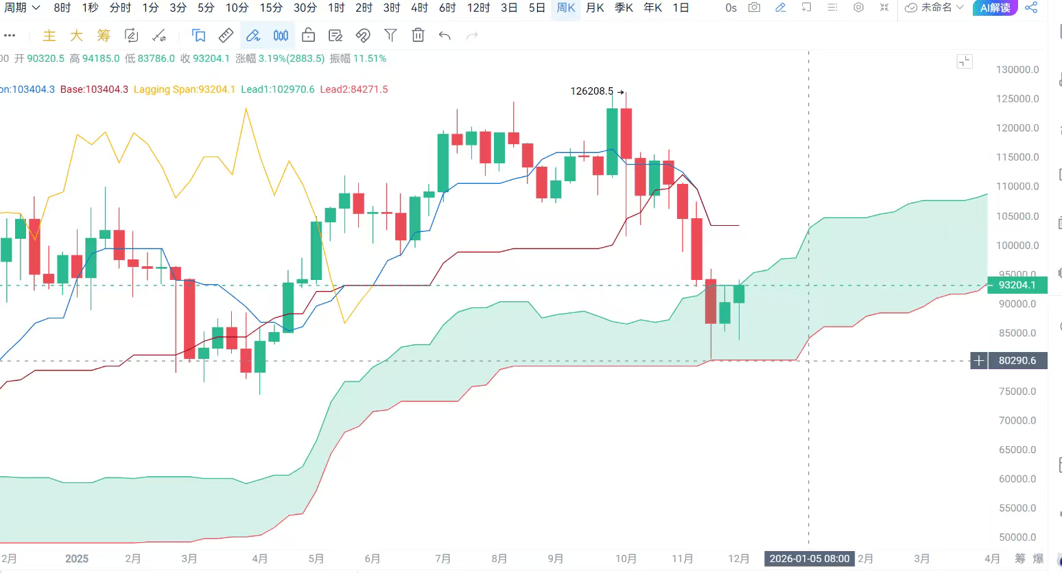 · Weekly level: The previous sharp drop found strong support around $80,600 (the cloud bottom) and rebounded, indicating that the foundation of the long-term upward structure has not been destroyed.