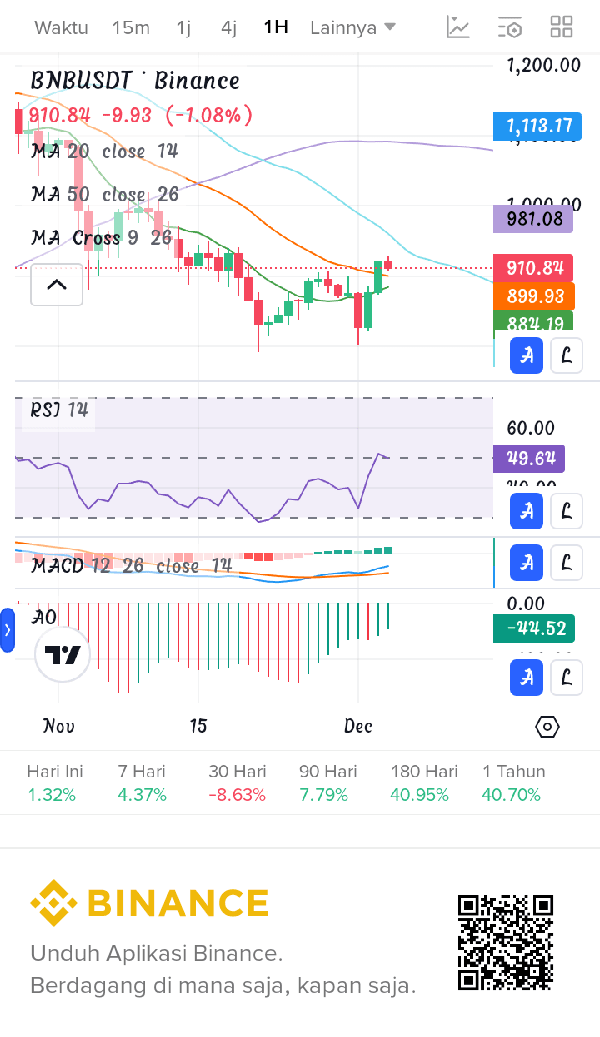 Price 910.70 USDT Moving above the psychological support level of 900 USDT.