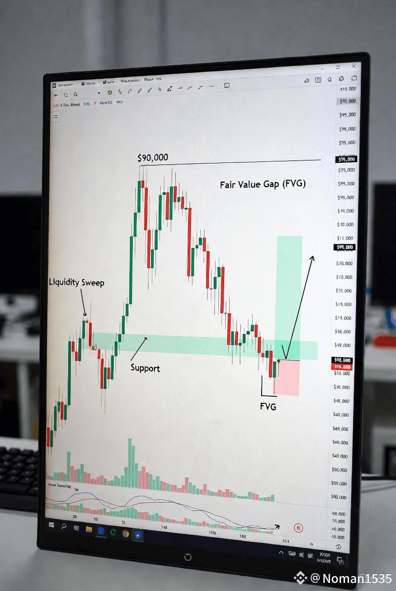 But the base-case scenario still favors one more push higher to tag that 95K bearish FVG first. Price tests resistance, reacts, then pulls back to retest the new inversion support – classic confirmation move. If that support holds firm, the bullish structure gets rock-solid.