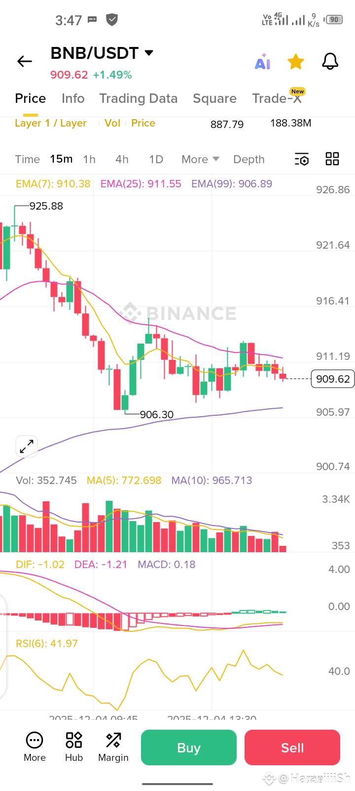 Price: ~ $910–$912 per BNB.
