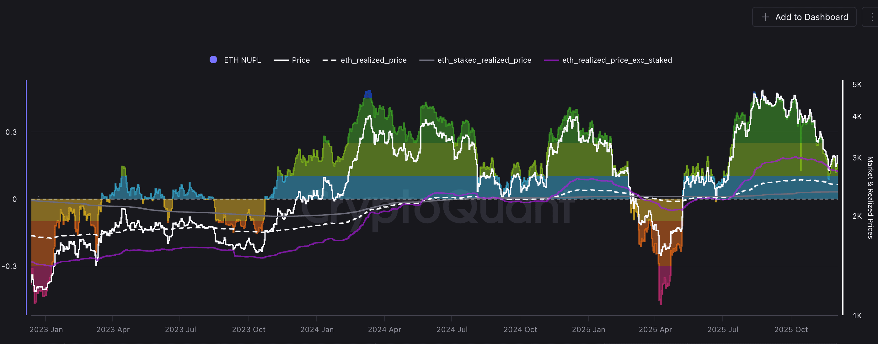 Ethereum recently dropped to around $3,100, yet the NUPL remains stable at 0.22, which means: everyone is still making some money, there's no panic selling, and it hasn't reached that 'hot-headed' stage of a bull market peak. During June to August, the NUPL soared quite high, but in October, ETH dropped all the way down, profits slowly shrank, and market sentiment reverted from 'overheated' to 'calm mode'. But here's the key point: the NUPL never dropped negative, indicating that people aren't losing enough to want to run away, and it's not so easy for ETH to experience a deep drop. The current market state feels like warming up in place, waiting for a clear catalyst to ignite. As long as the NUPL stays above 0.20 without falling below, Ethereum's breath won't be cut off, and there could be a sudden 'you thought it was over, but it suddenly surged' counterattack at any moment.