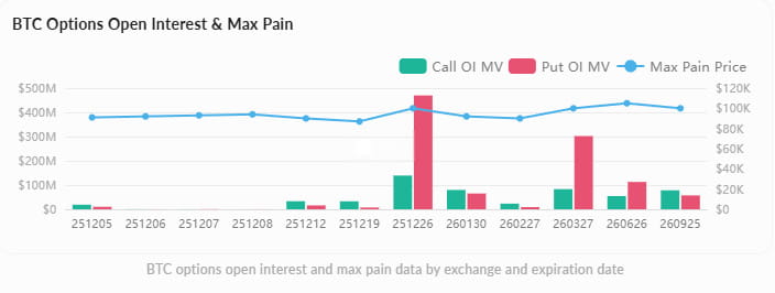 Recent maximum pain point: Contracts expiring on December 5 have a Max Pain at $91,000, and December 12 is $90,000