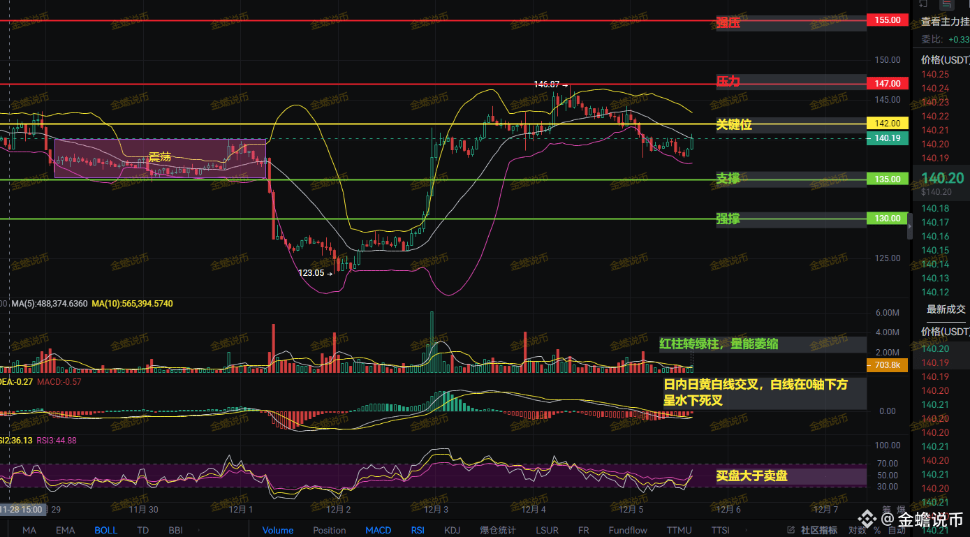 金蟾掏心窝子说:别看着降息概率高就疯了!现在 SOL 就是玻璃渣里找糖:没突破 142 之前,绝对别瞎买,防止插针砸 130;等 4 小时收线稳在 142 以上,再小仓蹭一口,摸到 147 就跑,别贪;要是跌破 135,麻溜清仓,别等套成长期股东。