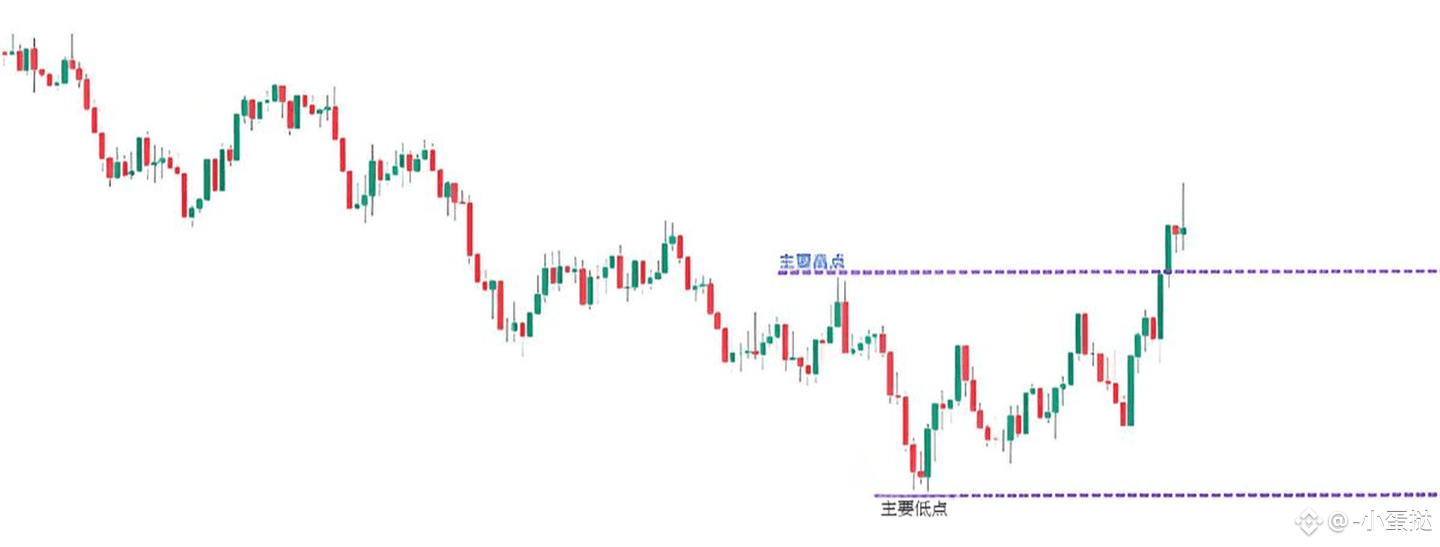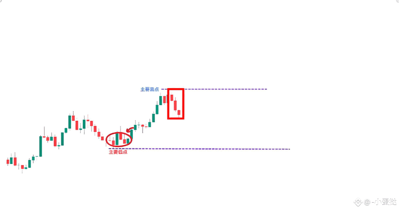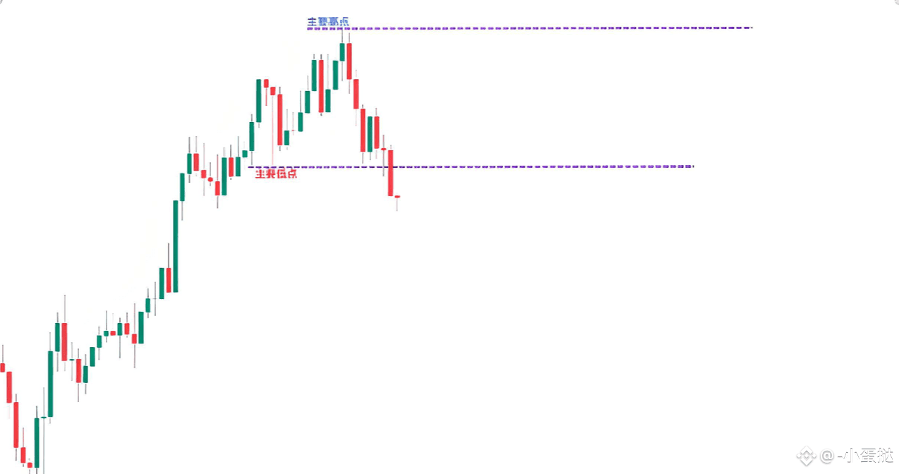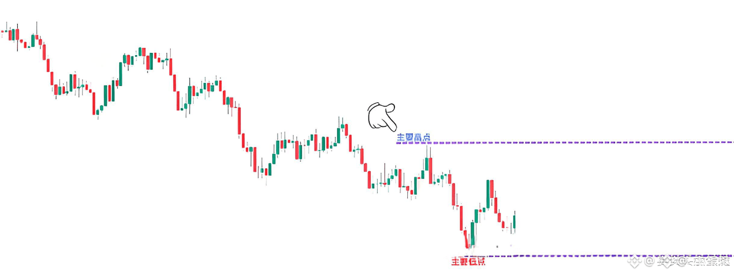 用市场结构交易,第一步也是最关键的一步:得会认价格的“主要高点”和“主要低点”。先看个简化示意图,帮大家建立基础认知: