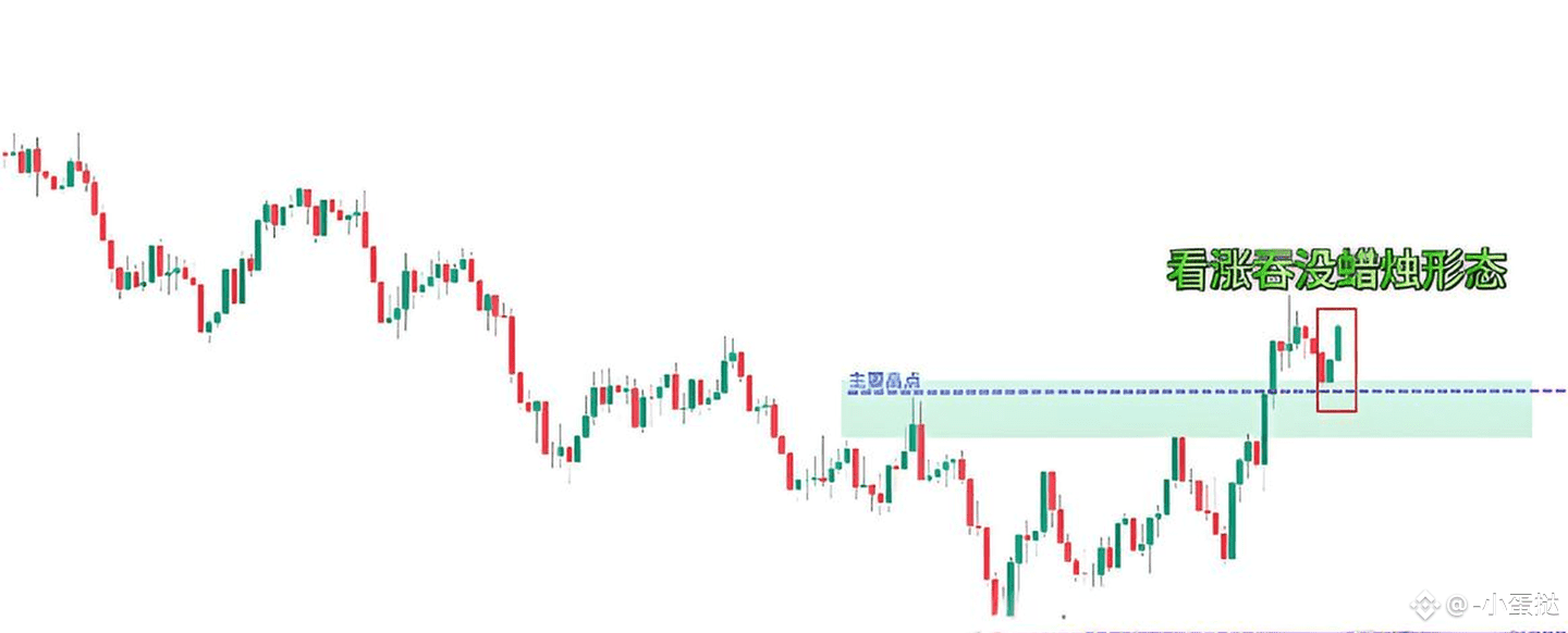 第三步:找关键价位+等确认信号入场。趋势反转后,不能直接瞎入场,要找关键价位。这里最稳妥的就是“前期主要高点突破后转支撑位”的位置。等价格回调到这个支撑位后,还要等看涨K线信号确认——图里出现了看涨吞没形态,阳线实体完全覆盖前一根阴线,说明多头动能很强,价格大概率会在这个位置反弹。