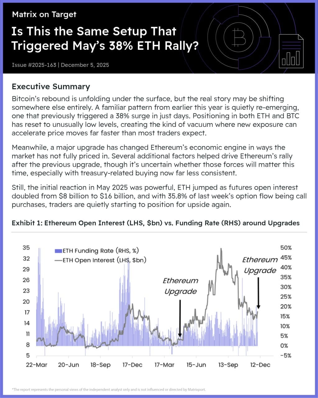 Matrixport leads to the thought: If an influx of positions begins, the market structure allows ETH to repeat the scenario of rapid impulse.
