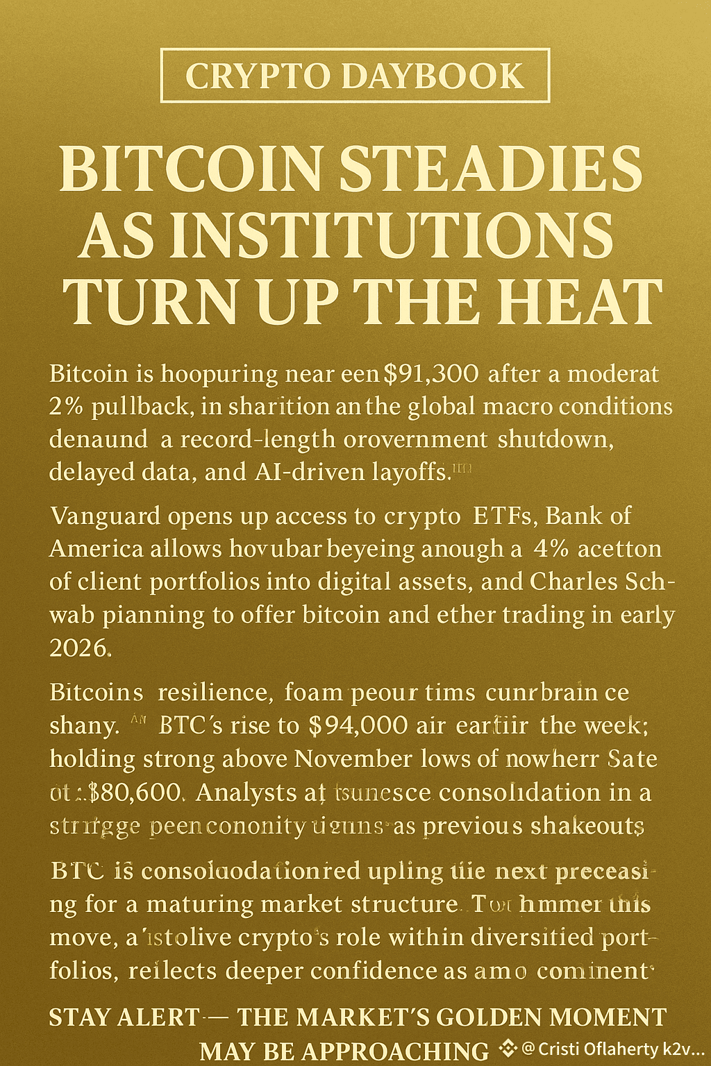 Crypto Daybook – Gold Edition: $BTC Bitcoin Steadies as Institutions Turn Up the Heat