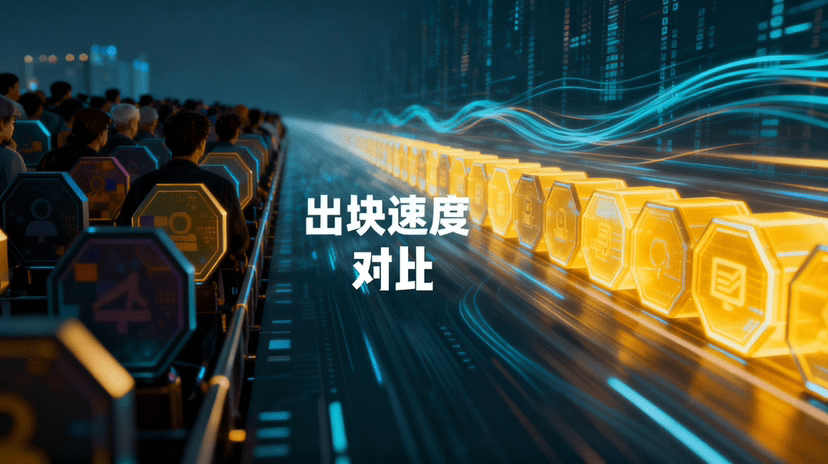 • Block generation speed determines transaction waiting time: slow chains queue longer, fast chains complete in a few seconds