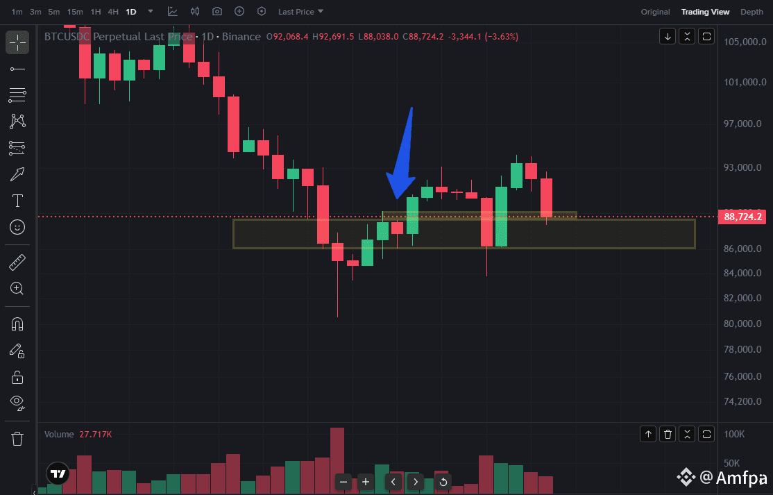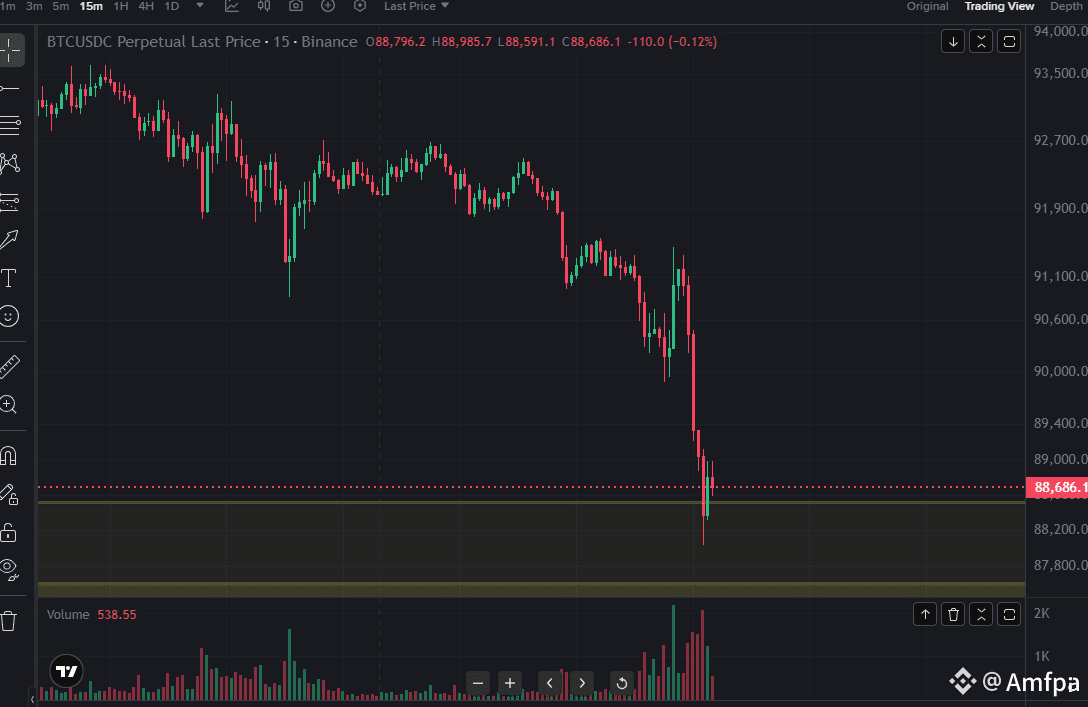 That big warning candle a few days ago wasn't lying. The bearish move is here, and $BTC is now searching for support below $90k.