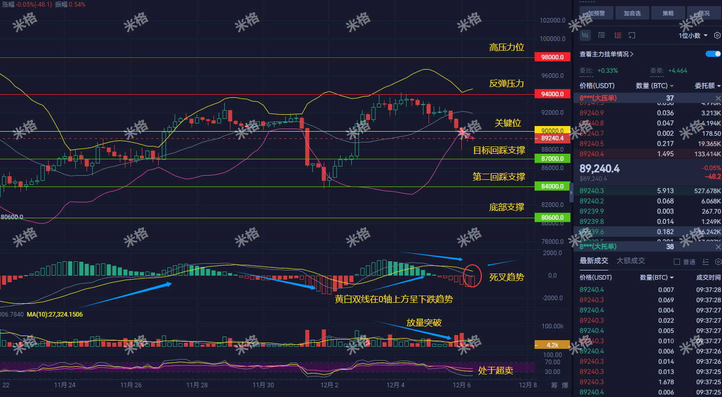 Mig's view is very clear: In the short term, BTC is still oscillating with a bearish bias; the death cross is not over, so don't rush to jump in. Even if there is a rebound, the pressure zone of 94000-98000 is not that easy to surpass. But if it really drops to around 87000 or 84000, it is actually a good opportunity to build positions in batches; don’t be greedy, buy in several times.