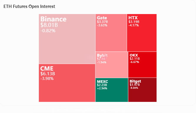 Positions and liquidations: Total open interest is $37.02 billion, down 2.93% in the last 24 hours, indicating a cooling market after leveraged liquidations. In terms of liquidation risk, there is a cumulative $587 million long liquidation pressure below $2,960, and falling below this level will trigger a chain liquidation; whereas above $3,050, a $725 million short liquidation zone may drive a rebound.