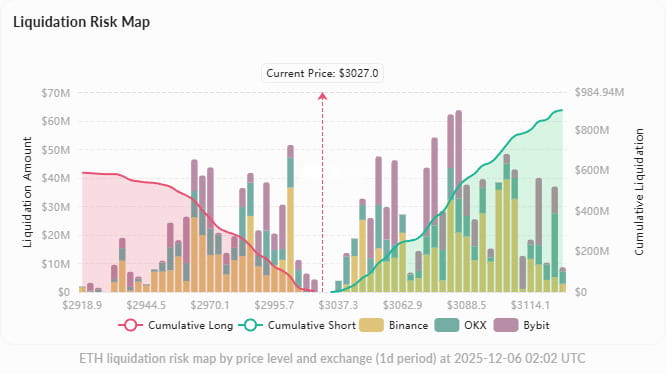 Strong support: $2,918-$2,950 (accumulated $587 million long liquidation concentration area, falling below may trigger a chain reaction)