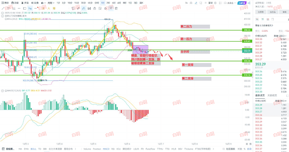 My view is, don't be scared by short-term fluctuations! The technical outlook is bearish, but the news could bring surprises. At the position of $354, entering now carries more risk than opportunity. The SEC meeting has not yet concluded, and the uncertainty of the news is too high; retail investors are most afraid of blindly following trends. Is there long-term potential for ZEC? It depends on the meeting results. If the regulatory direction becomes clearer, it might be an opportunity, but for now, we have to endure a bit more.