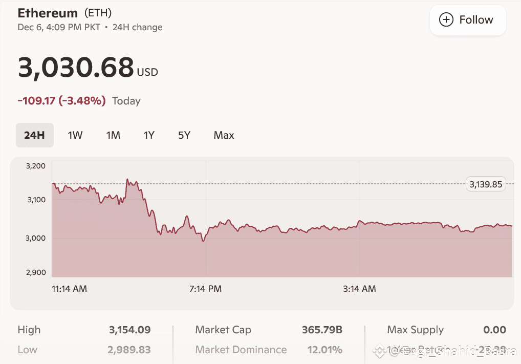 BTC90,474.7-1.08%Ethereum ($ETH ): Trading at $3,030.68, down 3.47% from $3,139.85.