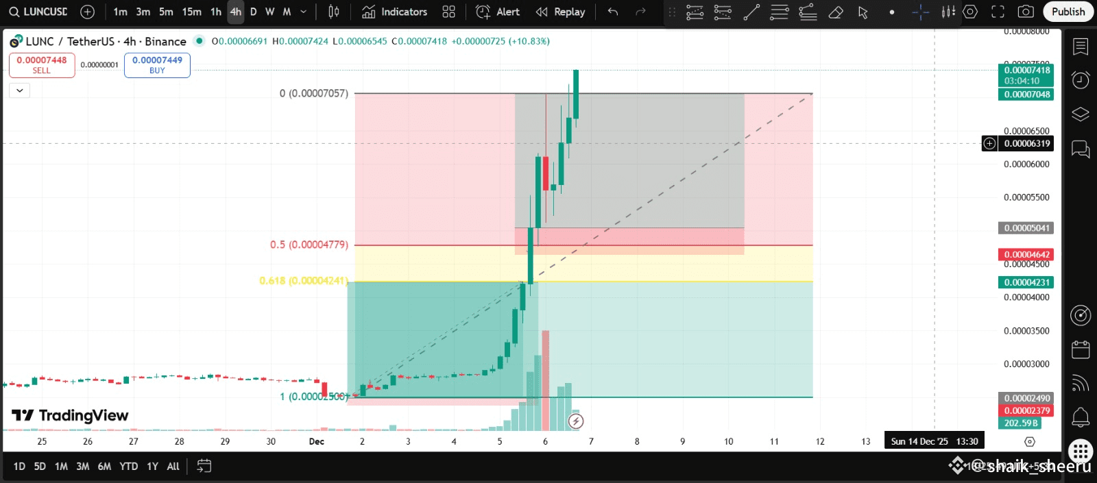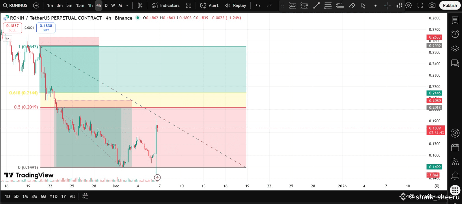 Price falls to 0.5 (0.201) or 0.618 (0.214) → Buy Zone.