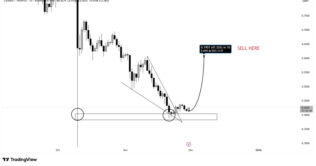 According to the charts circulating (courtesy of Rose Premium Signals), $ADA is bouncing right at the edge of a 'descending channel' on the 2-day chart. If we translate this to our language, it's as if the coin were trapped in a slide, but just when it was about to fall into the void, a trampoline pushes it upwards! ⬆️ This bounce is KEY, because it shows that the people who truly believe in $ADA are defending that support at $0.40 as if it were a treasure.