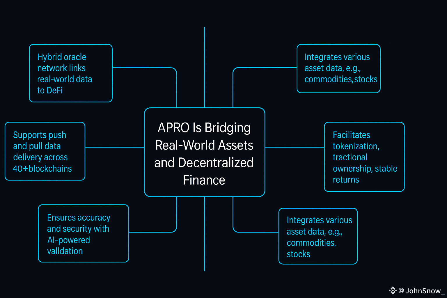 The future of finance is becoming more connected every day as blockchain technology opens doors that were once impossible to imagine. One of the biggest transformations happening right now is the merging of real world assets with decentralized finance. It is a shift that many projects talk about, but very few have been able to execute with real security, accuracy and trust. APRO is emerging as one of the few networks that can deliver this bridge in a practical and meaningful way.