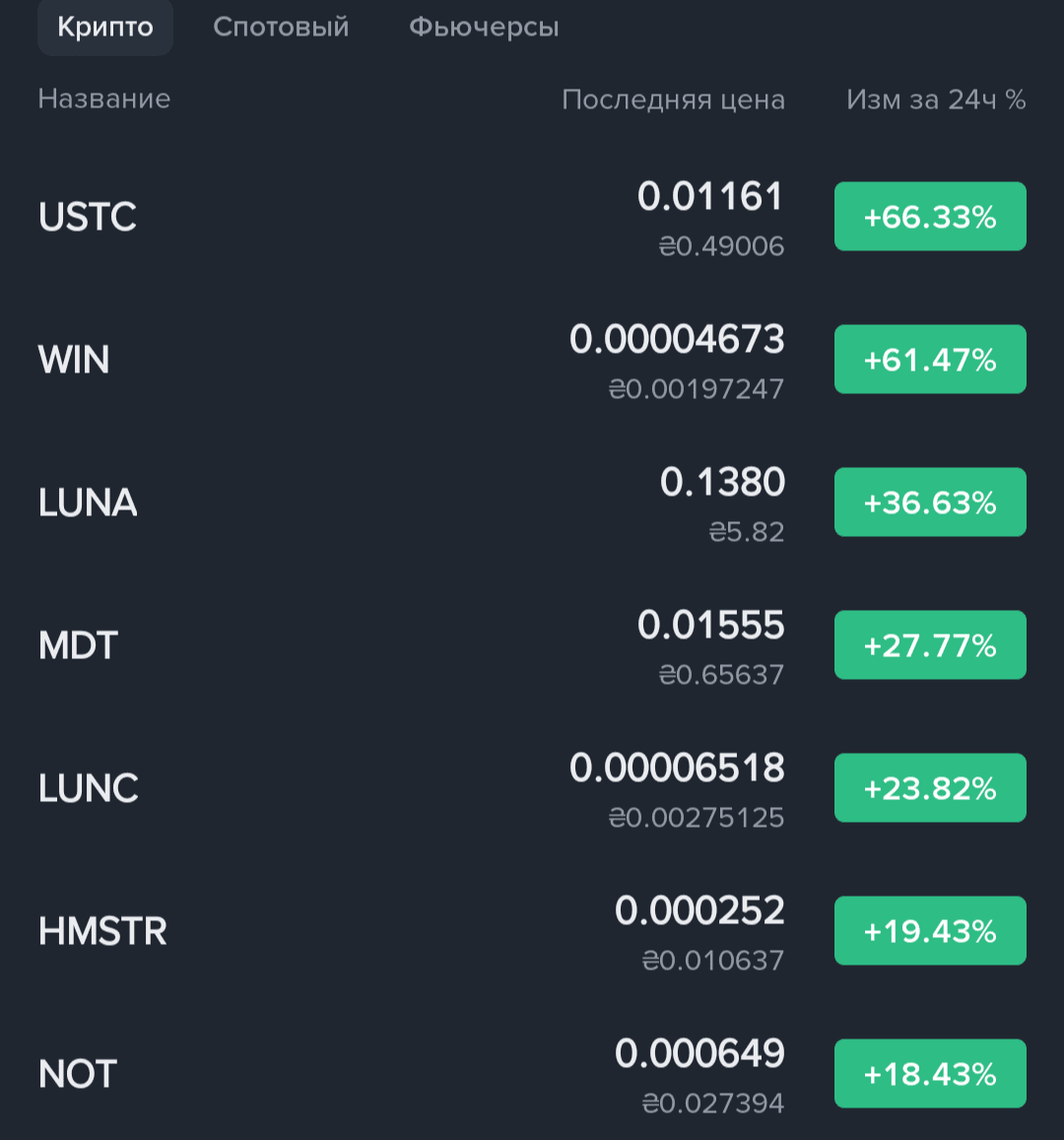 Altcoins with low capitalization and high volatility (even those like USTC and WIN) show multi-tens-percent growth.