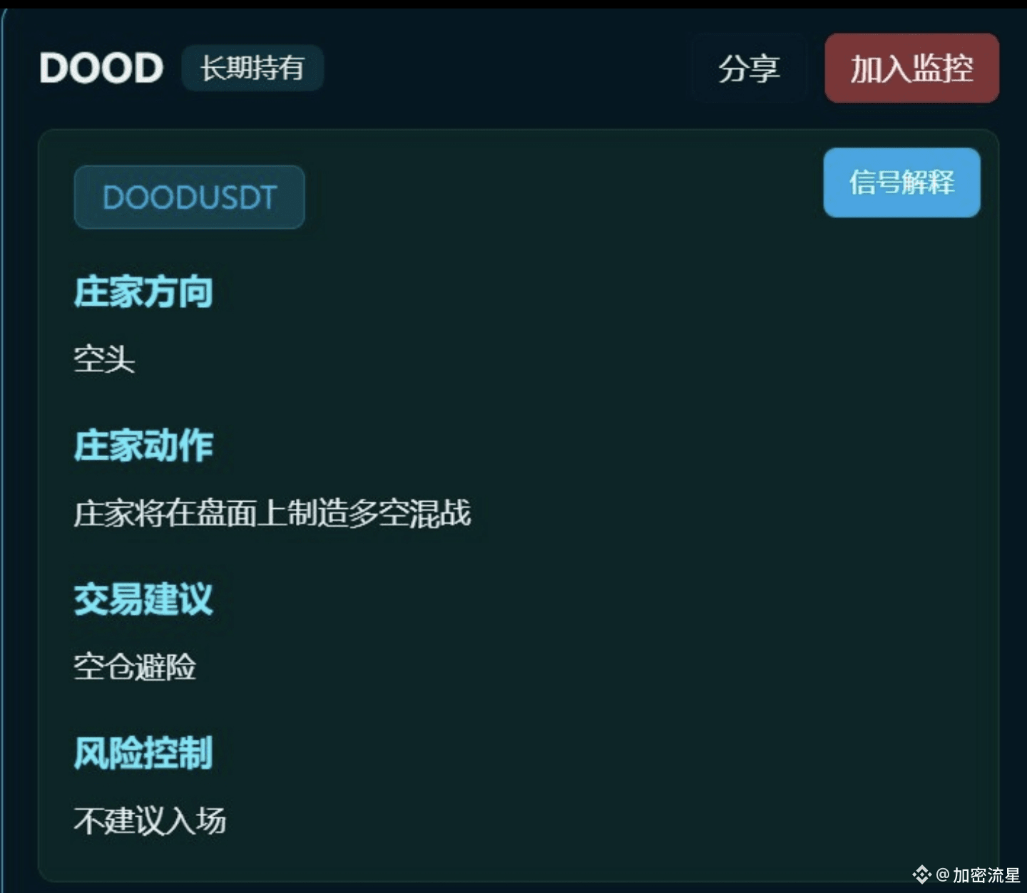 DOOD当前主力控盘色彩浓烈,小币种容易极端拉锯,建议操作务必轻仓、严守止损,同时关注社区和巨鲸异动讯号。