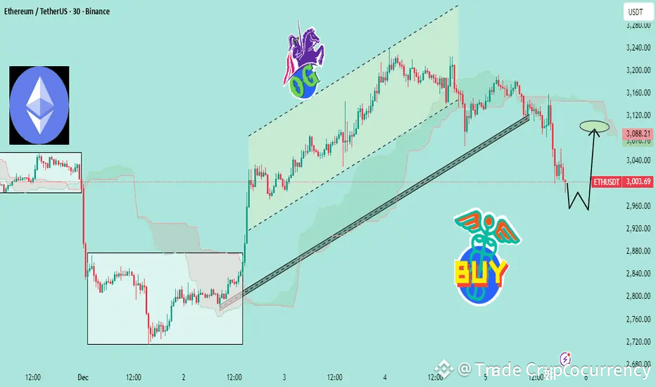 ETH formed a sharp sell-off leg, moving along the long diagonal trendline you drew.