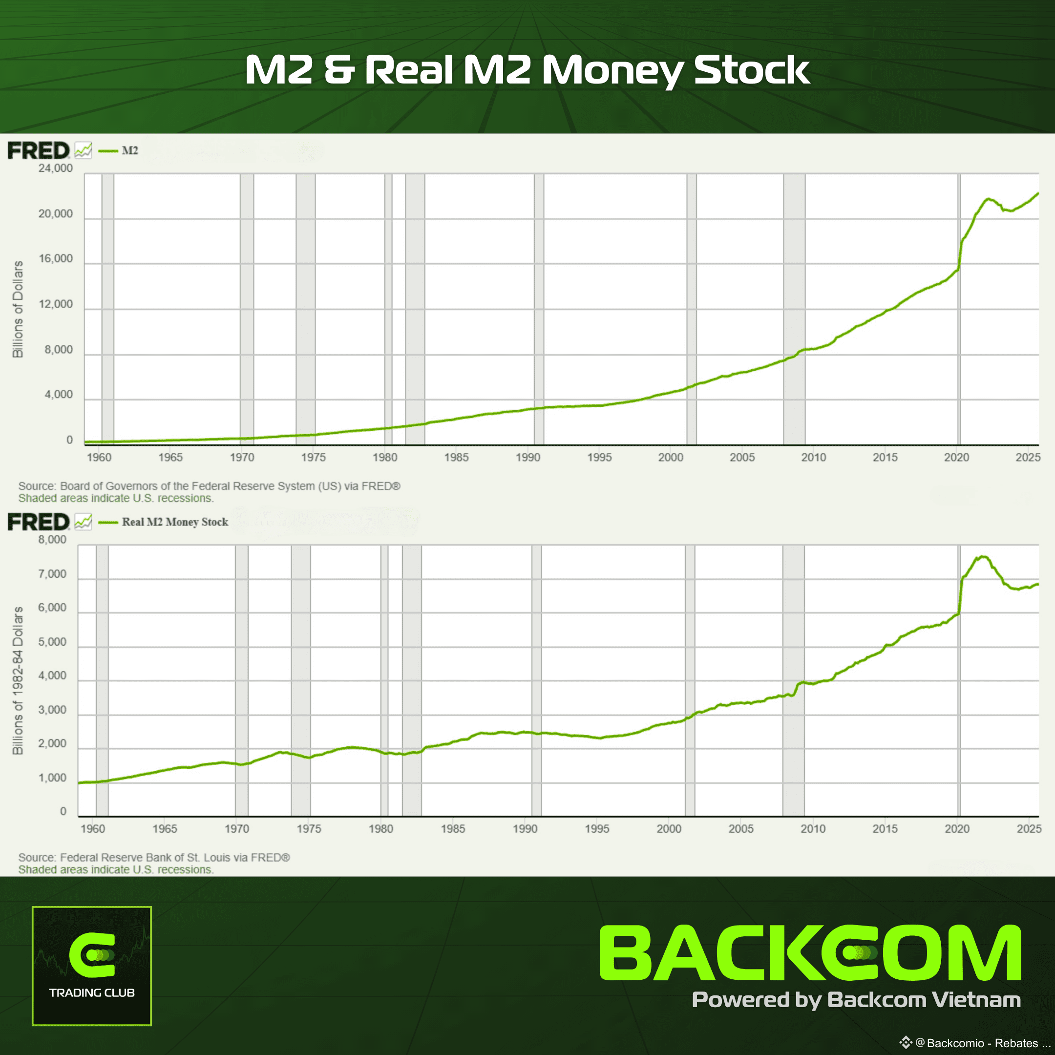 🔸 However, Real M2 - the amount of money after deducting inflation, is still clearly weaker than the 2021 peak.