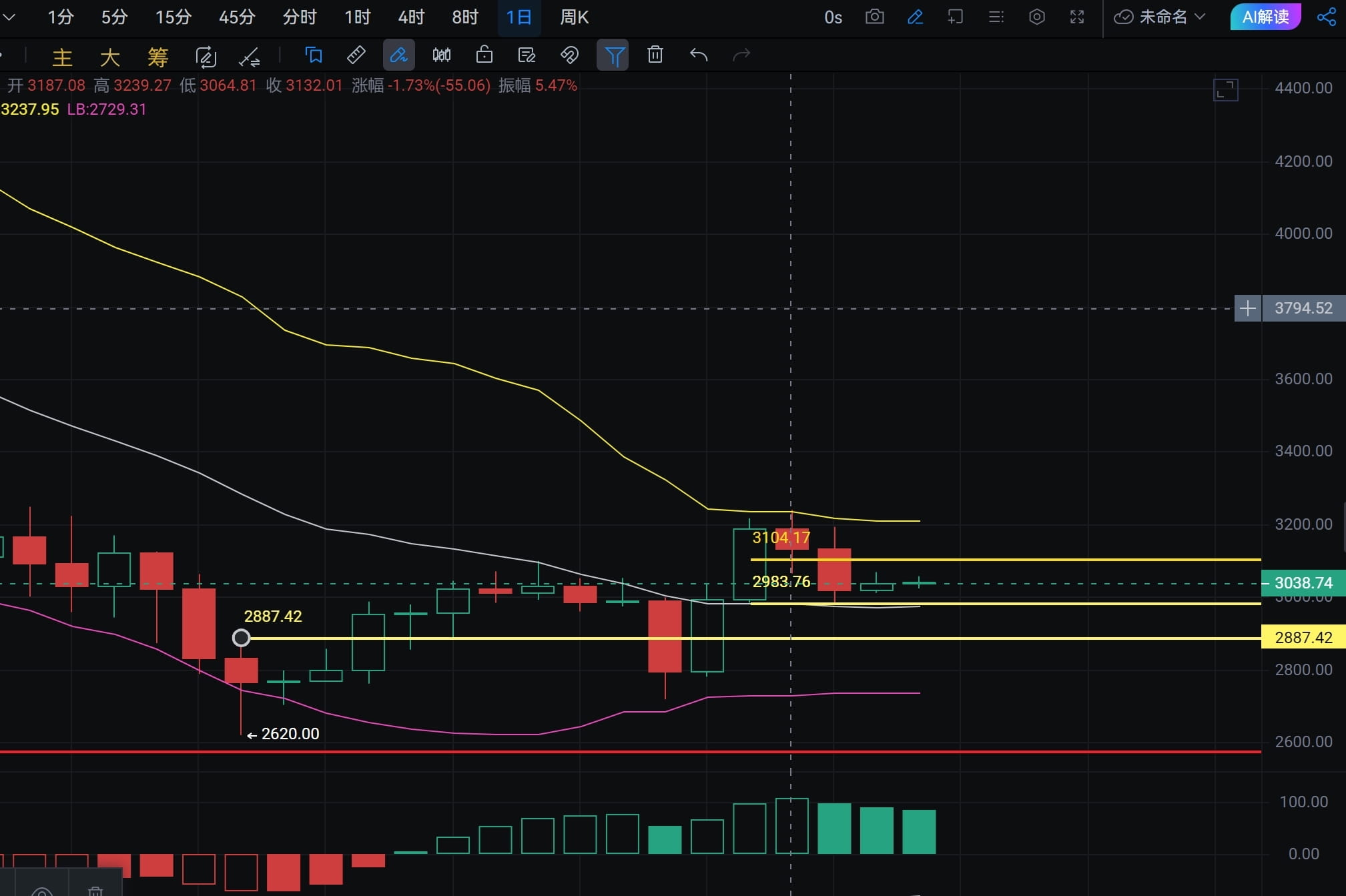 There hasn't been much major movement over the weekend, and unsurprisingly, it is moving in a range. Currently, the price is around 3010-3060.