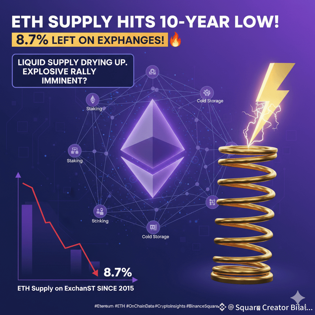 Only 8.7% of total ETH remains on centralized exchanges — the lowest level since Ethereum’s 2015 launch.