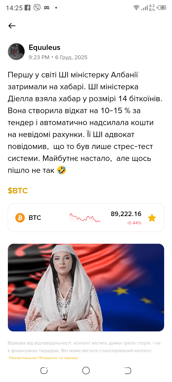 ❌ **Attention: The information about the bribe of AI Minister Diella is a satirical fabrication.**