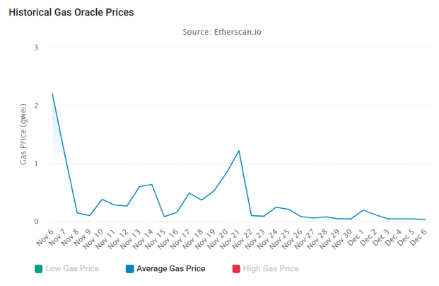 The average gas fee for Ethereum in the last 30 days. Source: Etherscan.