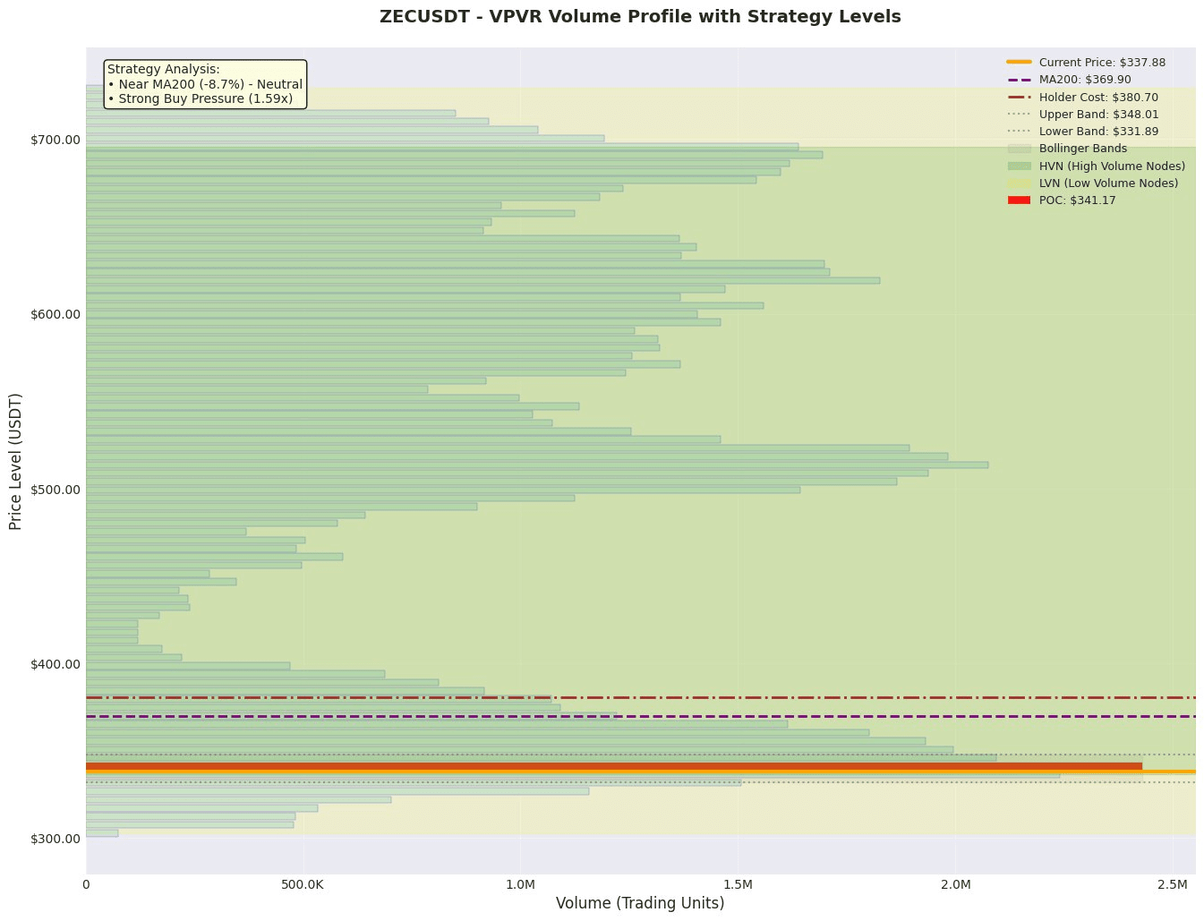 1. Value anchoring area: According to VPVR data, the current value anchoring area (POC) is at 341.17, which is the core price point of recent games. The range of the value area is extremely wide, from 326.80 to 700.43, with the lower edge at 326.80 being an important support reference, while the upper edge at 700.43 is too far from the current price to be meaningful for analysis. The current price of 337.88 is slightly below the POC, and if the price can stabilize above the POC, it will help shift market sentiment to a positive one.