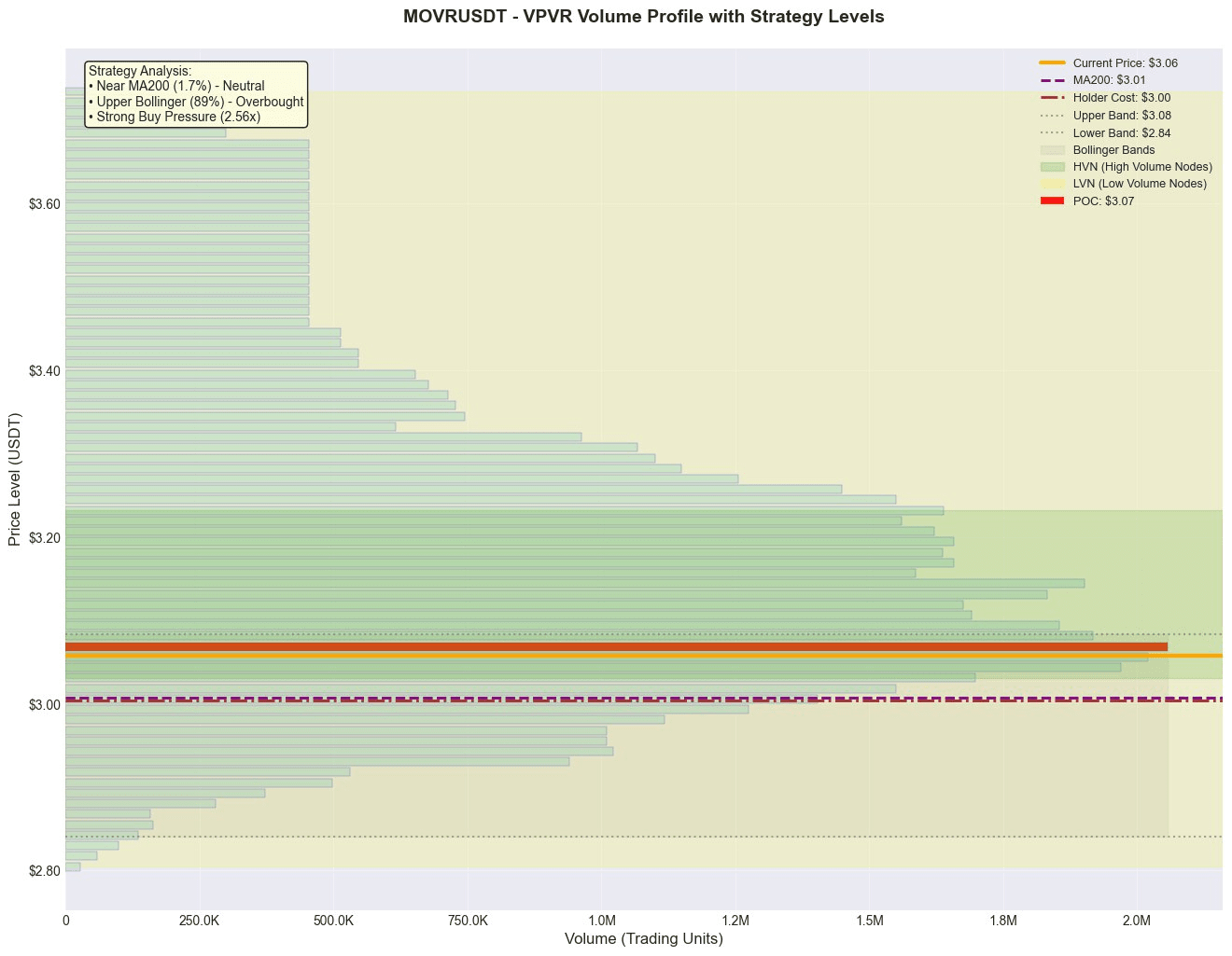 1. Value anchoring zone: According to VPVR data, the current POC (Point of Control) is at 3.068, very close to the current price of 3.057, which is the core value anchor of recent long-short competition. The Value Area ranges from 2.943 to 3.320, which means that prices above 2.943 are in a strong area. The current price is below the VAH (Value Area High) of 3.320 but has entered a high-value zone near the POC, facing a directional choice.
