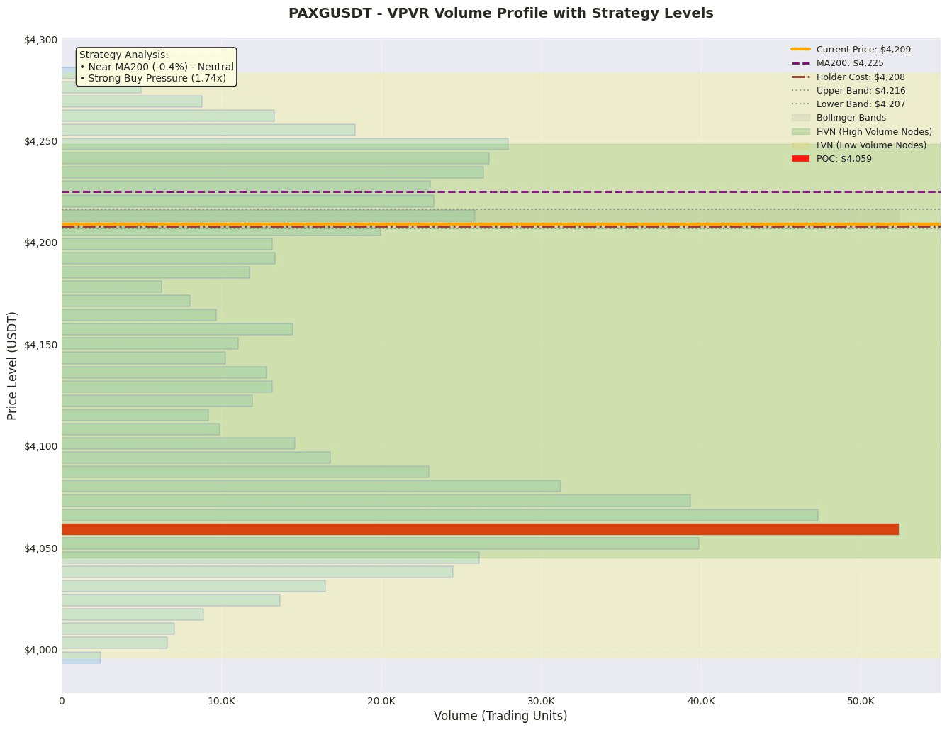 1. Value anchoring area: According to VPVR data, the 'value anchor' (POC) for this round of games is at 4059.15, while the value area (Value Area) ranges from 4031.11 to 4255.37. The current price of 4208.88 is near the upper edge of the value area, indicating that the market is trying to return from below to the value range. 4255.37 (VAH) is an important short-term resistance level, while 4031.11 (VAL) is the core support area.